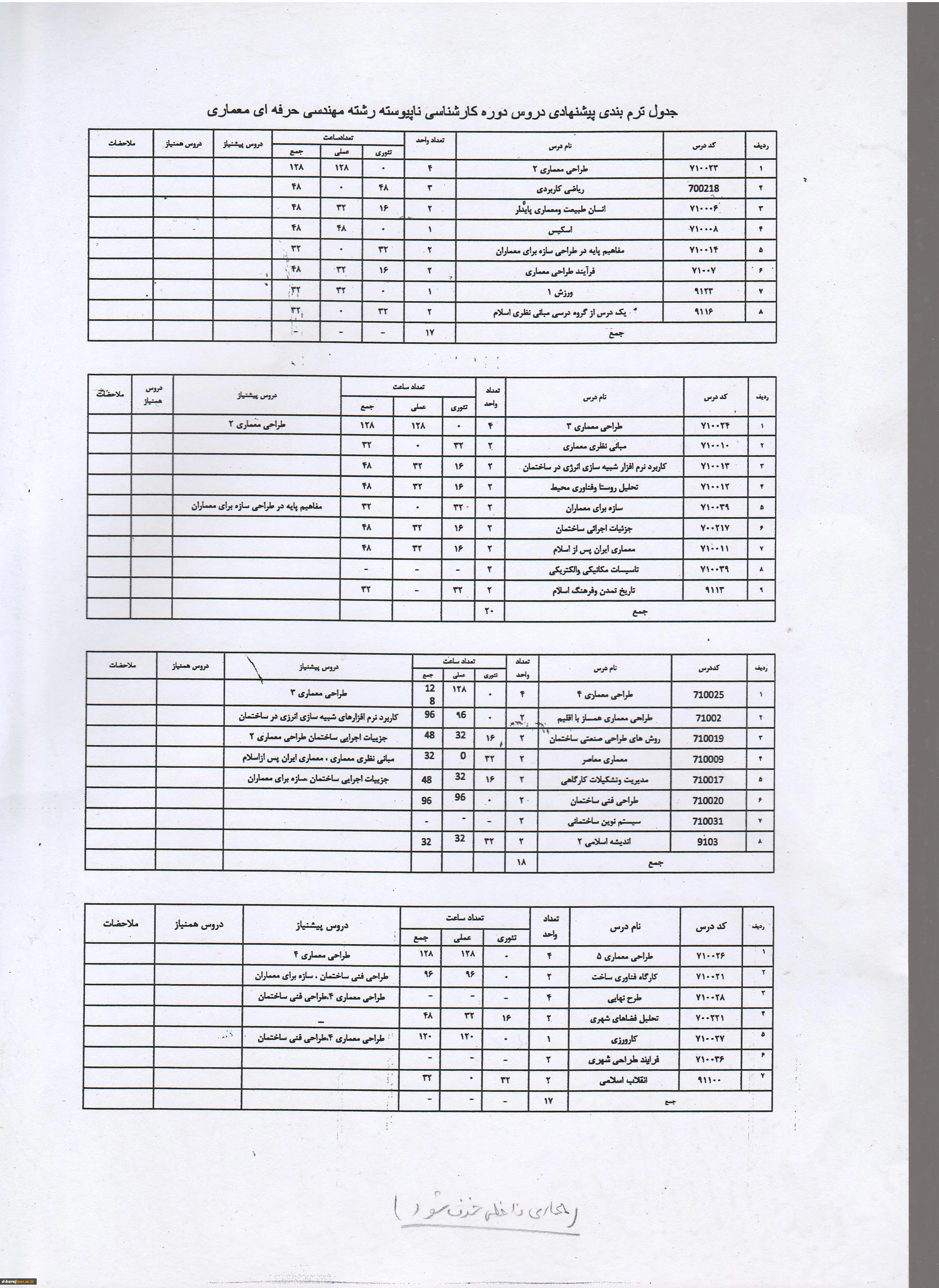 جدول ترم بندی ودروس